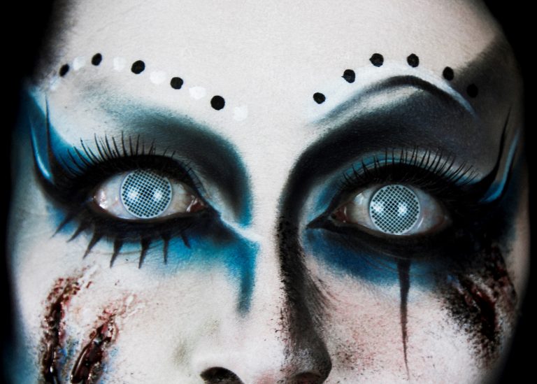 Nothing makes a statement better than a set of contact lenses if you’re looking to go that extra mile. They are an instant way to upgrade your look, take it to the next level and make you the stand out at almost any social event. They are of course also notoriously hard to get in unless you wear them as part of your everyday life and may also leave you with limited vision while being worn. Here Alice is given an otherworldly look with use of a matching pair of lenses while a single white lens still makes quite a statement. A word of warning though…….