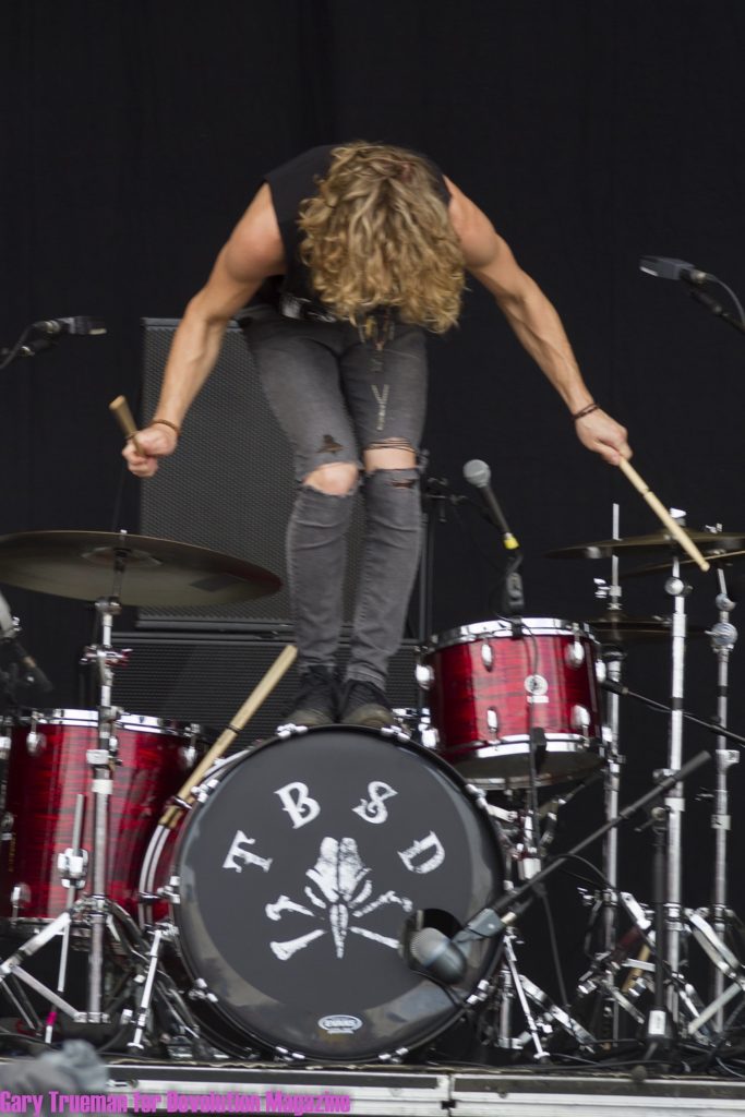 Aaron Buchanan is no stranger to Download having been a regular over the years with his previous band, Heaven’s Basement. It’s this wealth of experience on the big stage that he brings to the Dogtooth tent and which cannot be contained to the stage alone. This isn’t a gig, it’s a full on show reminiscent of early Queen that needs a bigger stage to be appreciated. Needless to say it isn’t long before Aaron is over the barrier and crowd surfing. It’s not all about his new music though as he brings out the big guns with a song from his Heaven’s Basement days.