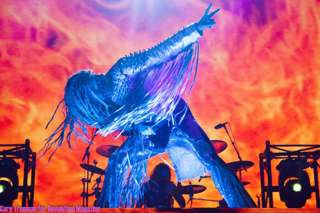 Mark: With the weather holding for a second consecutive day the bands are split between the second and fourth stages. In the tent Dead Label bring their own army of fans while pop-punks IDLES get a warm reception from the afternoon crowd. Meanwhile on second stage RavenEye are up to their usual stage tricks. Alestorm get the crowd singing along whilst attracting a trio of dancing penguins as well as forming the happiest circle pit on the planet. Coheed & Cambria finish up my time on the second stage while we wait for the headliners.