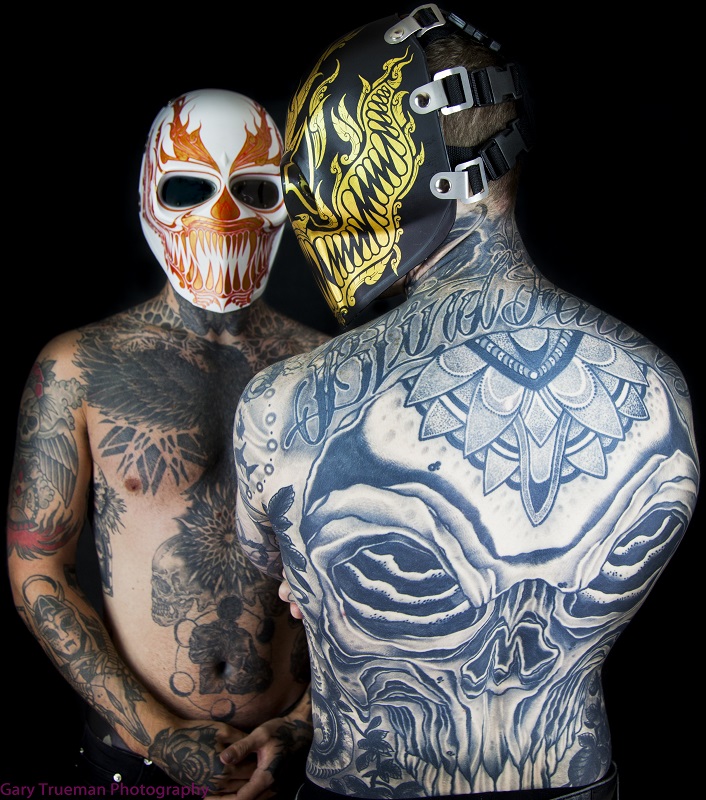 Nottingham Duo Bone Cult are a bit of a conundrum.  They play their music without a drummer and run much of their shows from laptops, and yet rock and metal fans love them.  They’re also so secretive they wear masks on stage to hide their identity but are more than happy to show off their pretty awesome ink.  In a world of humdrum music this is one act that really are forging a brave new path.  Gary Trueman had a chat with the guys about audience acceptance, their masks and just where they wouldn’t get inked.