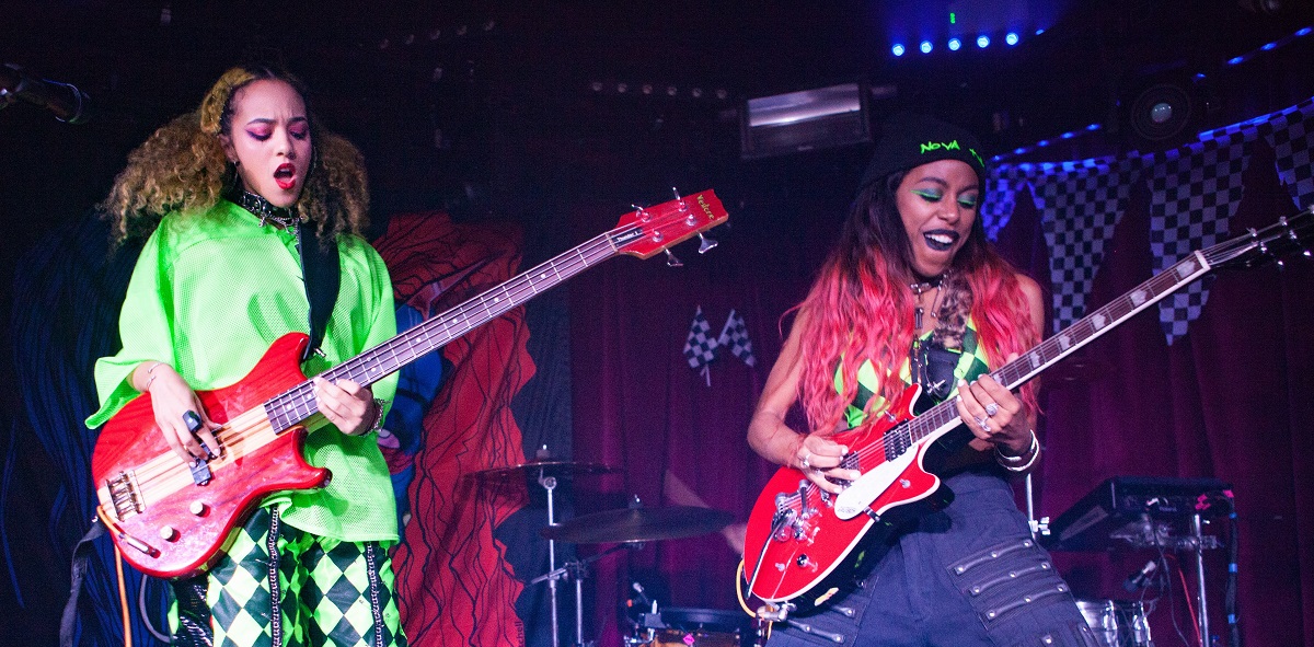 “Usually we ask the venue not to use their lights at all because it won’t go with what we’ve prepared.  Getting someone to do our light show who doesn’t know our set just on the fly isn’t going to be very effective.  WE have got a few plans on how we can scale up at bigger venues because we are designed for small stages.  We’re just trying to work with what we can at the moment.  We try to make it as big and exciting a show as we can get away with.  A big problem for us is smoke machines, we love having it and our set relies on it to make the lights look good but so many venues won’t let us use it.”