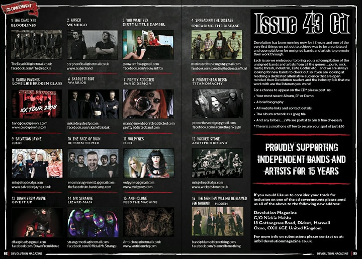 If you are interested in appearing on Issue 44’s cd then please email info@devolutionmagazine.co.uk with the following info:
