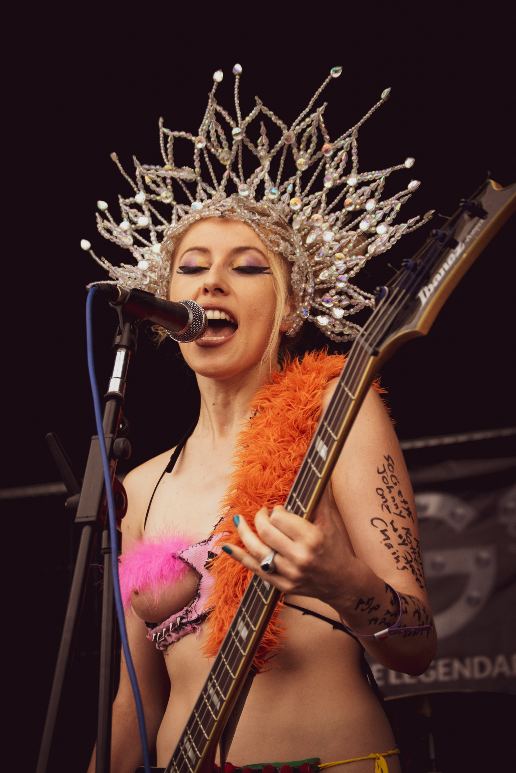 Saturday night’s G’s Bar headliner was an absolute no brainer for a top 5 spot. The Japanese punk band Electric Eel Shock certainly put a spark into the proceedings with their high energy performance. It’s a classic 3 piece line-up, with a classic punk sound, that gets the bar dancing away until midnight. Thankfully the tent has cooled down from the muggy heat of the afternoon, but it’s clearly still too hot for the drummer as he gets to work in his birthday suit. No one cares if half the songs are in Japanese or in English as they’re too busy having the time of their lives, just like the band were.