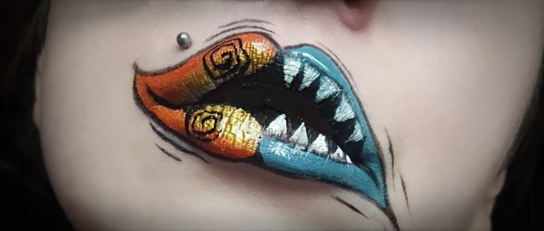 1. Start off by applying Shiver (blue) to one side, making a sad mouth and Salem (gold) to the other to make a happy mouth.