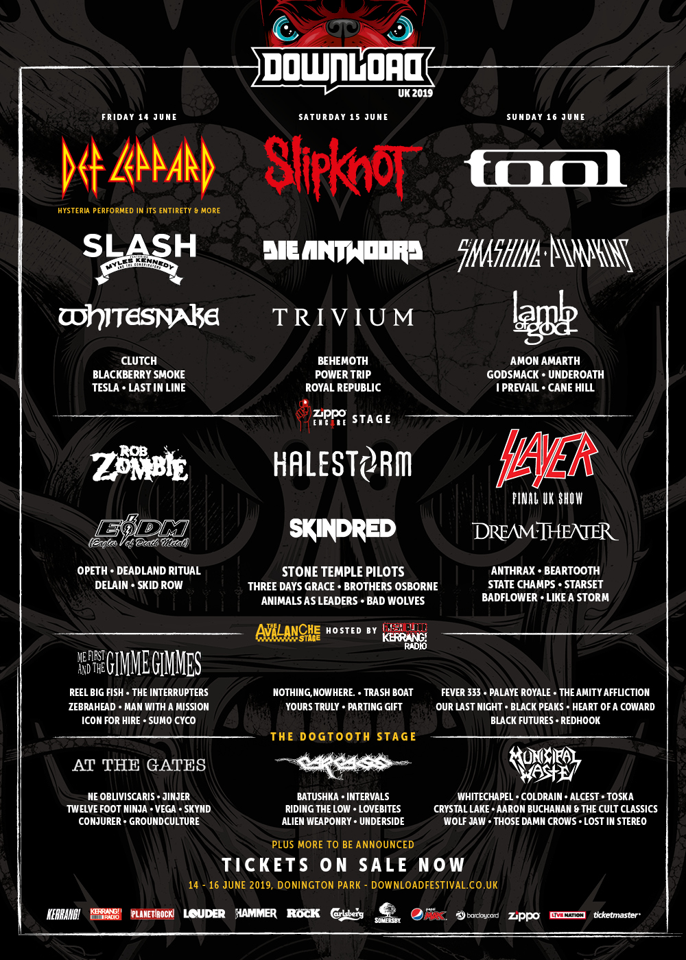 Download Festival has announced a further 43 acts including Halestorm, FEVER 333, Beartooth, Skid Row,Brothers Osbourne, Stone Temple Pilots, Clutch and many more, joining headliners Slipknot, Tool and Def Leppard for the annual rock extravaganza. The three-day festival takes place on 14-16 June 2019 at the spiritual home of rock in Donington Park, Leicestershire. Kerrang! Radio have also launched a talent search for a chance to open the Avalanche Stage at the festival, head to Kerrang! Radio for more info.