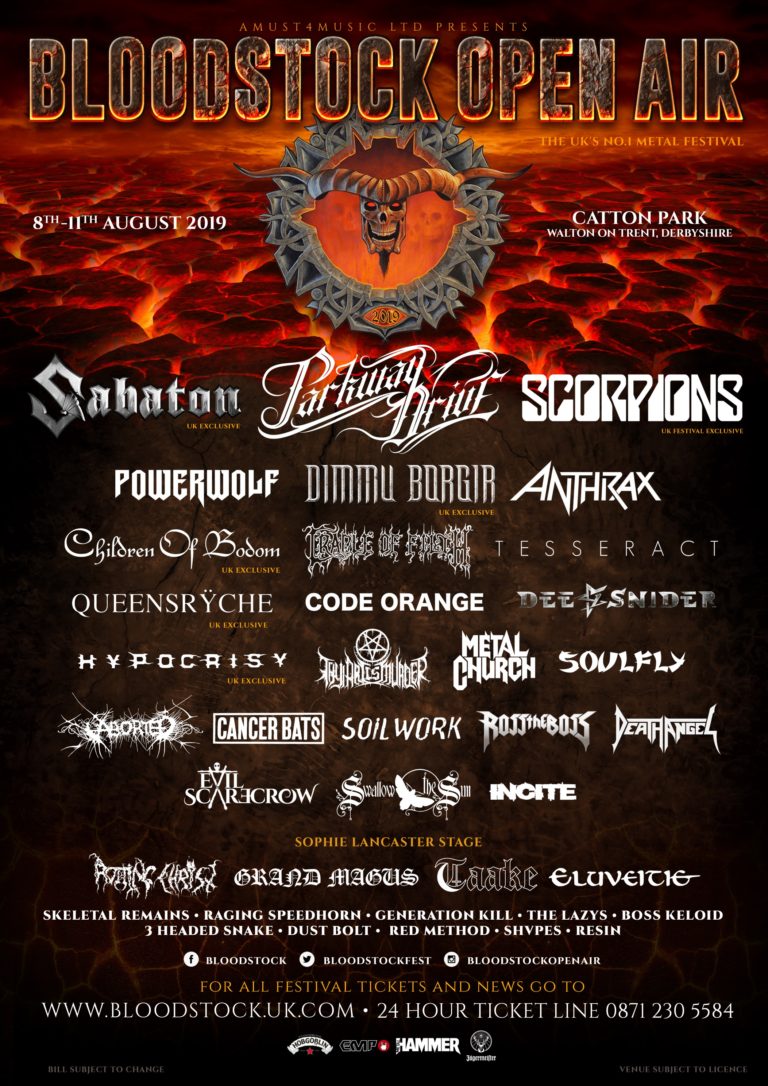 Friday night’s headliner SABATON, Saturday’s top dogs PARKWAY DRIVE and Sunday’s bill toppers SCORPIONS, join ANTHRAX, DIMMU BORGIR, CHILDREN OF BODOM, CODE ORANGE, POWERWOLF, SOILWORK, CRADLE OF FILTH, THY ART IS MURDER, TESSERACT, METAL CHURCH, SOULFLY, DEATH ANGEL, DEE SNIDER, QUEENSRYCHE, ELUVEITIE, SWALLOW THE SUN, EVIL SCARECROW, ROSS THE BOSS, GRAND MAGUS, ROTTING CHRIST, INCITE and HYPOCRISY on the Catton Park stages this August. With more than 80 bands to go, stay tuned for even more artists to be announced soon!