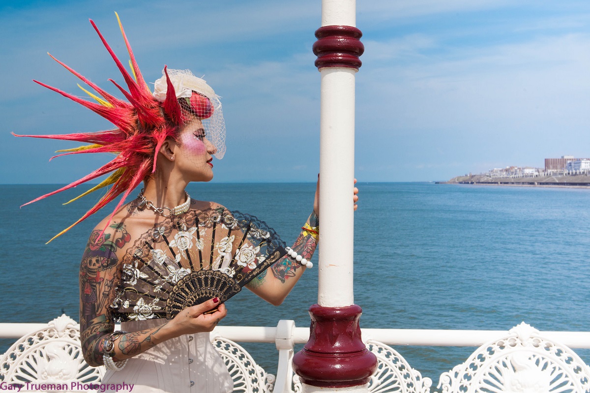 La Katrina plays bass guitar for the excellent Migrana Social and has quite a few more strings to her bow too. She’s a tattoo artist and model with a unique and striking look. Turning heads all weekend at Rebellion she took time out to chat to Gary Trueman  about her style influences and  the inspiration behind her image.