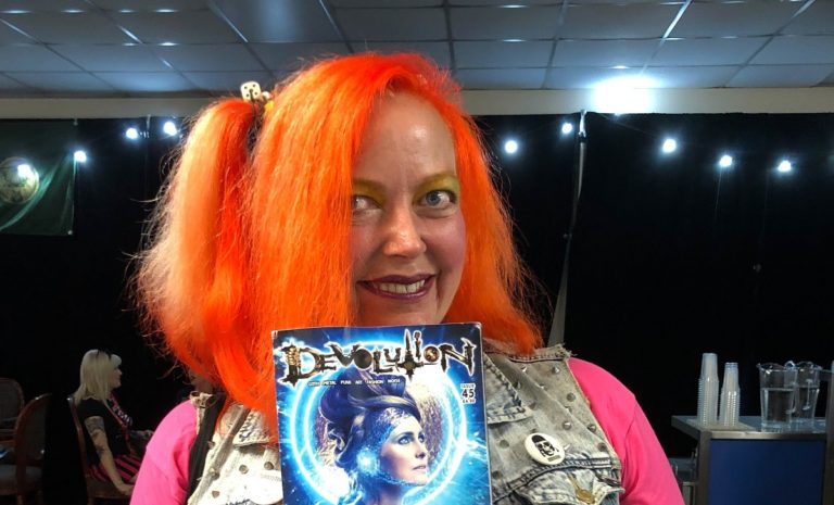 “Viki Vortex and the Cumshots is obviously me, Viki Vortex, playing bass and singing, coming from California, then England, living in Spain. Steve, who was originally in a band in 1977 called the Spurts, he was the guitarist, no he was the singer in the Spurts, but now he’s the guitarist in Viki Vortex. And then Theo, who lives in Brighton, who’s from the Long Tall Texans. So we kidnapped him because Steve used to be his roadie, for the Texans back in the 80s, so we just decided that we had so many problems trying to find drummers and eventually we thought  okay, Steve’s like, we had like 9 drummers in Spain, and I don’t know why, drummers seem to be like unicorn shit, I don’t know. So Theo’s great, we’ve had a couple of substitute drummers in Spain when Theo couldn’t do it because he was very busy with the Texans, however he is one third of Viki Vortex.”