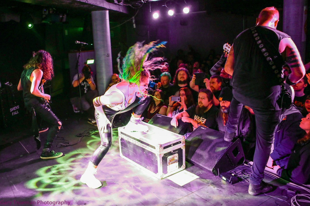 Suburban brings a touch of Aussie quirkiness to the Underworld with his rap infused rock that gets the venue bouncing early. Getting up close and personal with the already packed floor is a smart move and the crowd responds in kind. Rap metal isn’t anything new, neither is cross over music, but Suburban has an infectious quality that gives him an edge live. In a compact place like this with the temperature already hitting the red line the music takes on a life all of its own. Fabulous stuff.