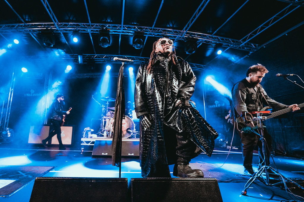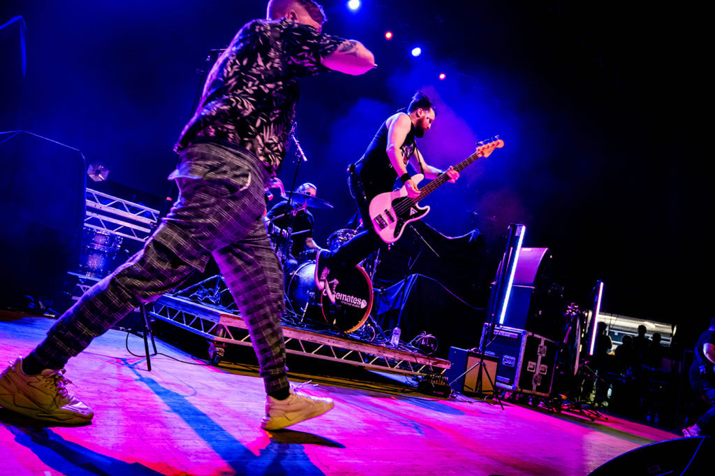The opening band is Autumn Fires, who start just a couple of minutes late due to a slightly longer stage setup than expected. They’re a Paramoresque pop punk band with plenty of girl power on show from their purple haired lead singer. It’s a quick walk through to catch Dendera on the main stage. The local power metal combo test the speakers to the maximum. It’s going to be a very loud day. The Down For Life Music stage opens up with Asleep At The Helm, a shouty tech metal band with plenty of energy. Other bands that get a worthy mention are: Slackrr make the most of the outdoor stage with their pop rock friendly mix of male and female vocals. They have good stage prescience and crowd friendly lyrics for singing along to. Words That Burn make the most of the Out Of Line stage, they’re loud and heavy and work hard to get the crowd moving. Royals bring some pop punk from Southampton with bags of energy and springs in their shoes. Lightwaves’ complicated vocals mean they have to put the backing track on, but they get a good-sized crowd on the Down For Life Music stage. For fand of early Fall Out Boy, Bottom Line bring plenty of pop punk energy to the Total Rock stage. Meg Emilie plays an almost acoustic set with just a guitarist to accompany her haunting vocals. As December Falls crowd plenty of bodies into the outdoor arena with their friendly pop punk. CLT DRP come close to making a top 5 appearance with a powerful performance. More recognisable today for his cooking with Gordon Ramsey, Kier Kemp reminds us all that he was first and foremost a musician with the Fearless Vampire Killers. Defences get the dreads flying as Cherry Duesbury gives the Down For Life Music stage their teatime work out.