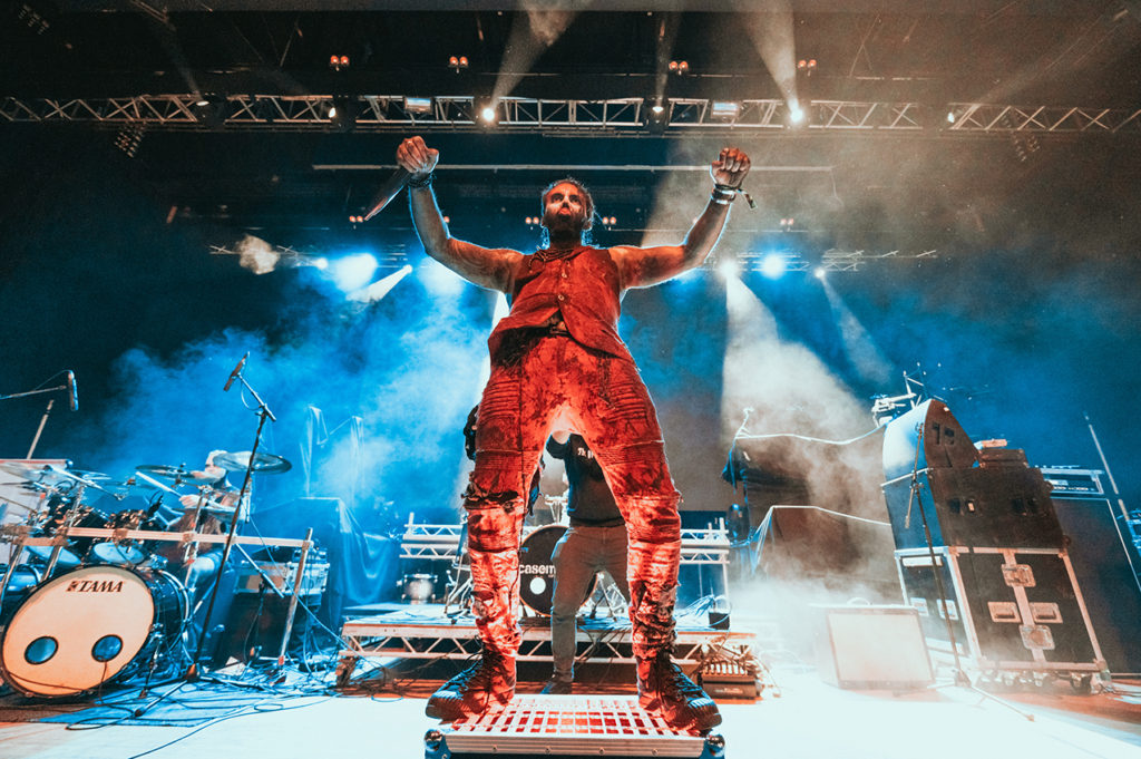 Local lads Seething Akira bring out the home crowd and pack the main hall. It’s full throttle mayhem from them that soon sees the crowd circle pitting and making the security guards earn their pay as the crowd surfers hit the barriers almost from the first song. It’s a sign of things to come for this cross-genre band who will be hitting Bloodstock’s main stage later in the year. For now though Charlie and Kit are clearly having as much fun as the crowd. Get those middle fingers up in the air!