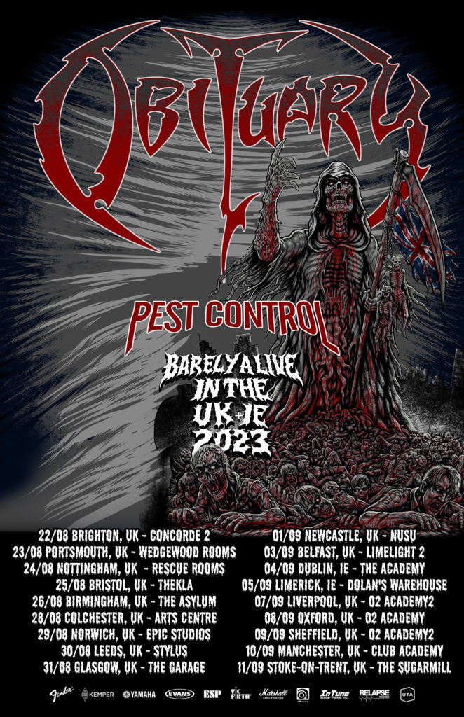 Obituary comment: “It has been way too long since we’ve had the opportunity to invade the UK & Ireland properly and we could NOT be any more excited about this announcement. Finally a tour that brings us to so many cool towns and cities across the UK that allows us to get up close & personal with our fans and a true “grass roots” run! Hang on to your ass..this is going to be epic!!”
