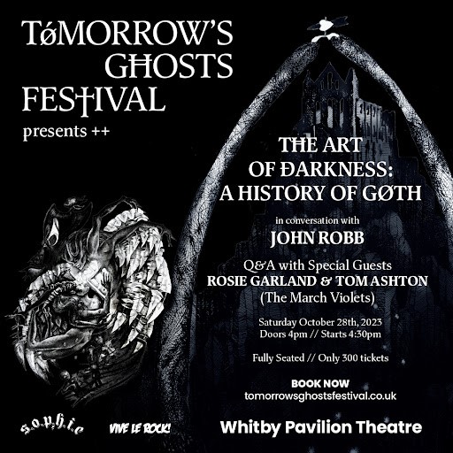 ‘The Art of Darkness: A History Of Goth’ In Conversation with John Robb + Q&A with special guests Rosie Garland & Tom Ashton (of The March Violets) takes place on Saturday 28th October @ 4.00pm. Tickets will cost just £7.50+BF – available HERE.