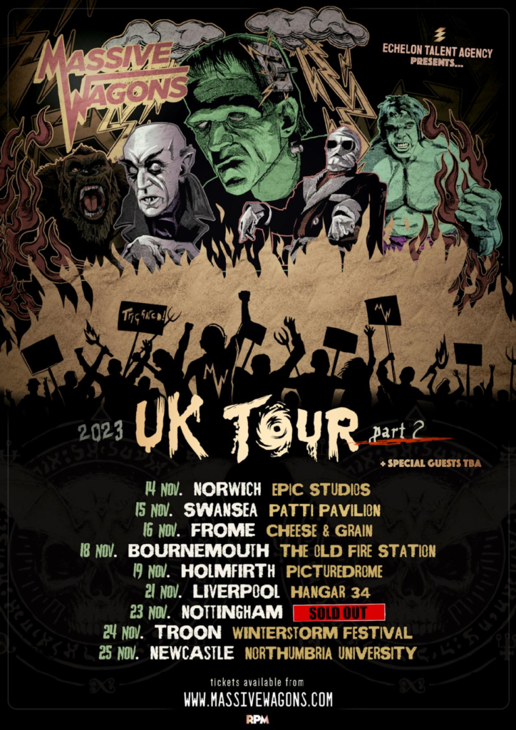 MASSIVE WAGONS are currently gearing up for the second leg of their UK headline tour, supporting their hook-laden latest record ‘Triggered!‘ which piled into the UK official album chart at #6 upon release, claiming the group their second Top 10 album. The tour kicks off on November 14th, so not long left if you want to grab one of the few remaining tickets on sale now!