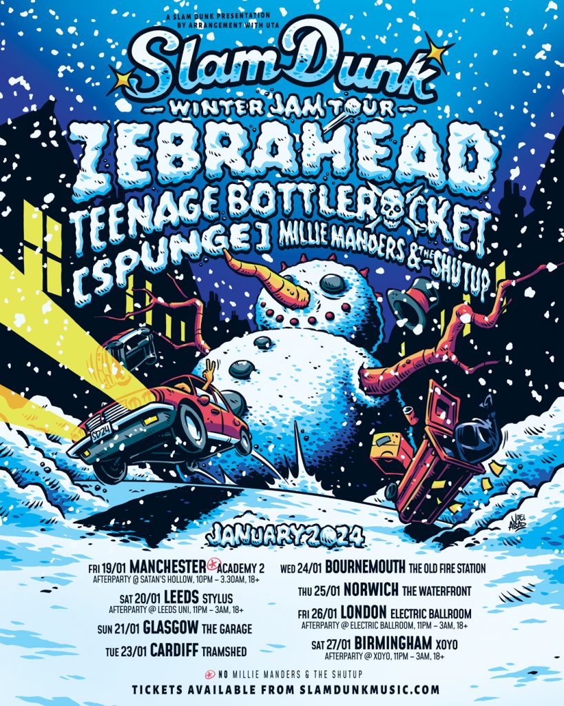 Following their most successful, mostly sold out UK tour to date throughout October and November, MILLIE MANDERS AND THE SHUTUP have now been invited to join the SLAM DUNK WINTER JAM TOUR in January 2024 alongside Zebrahead, Teenage Bottle Rocket and [Spunge]. Full dates as follows: