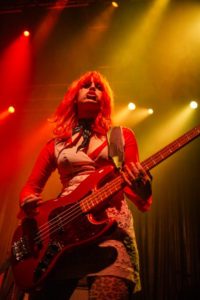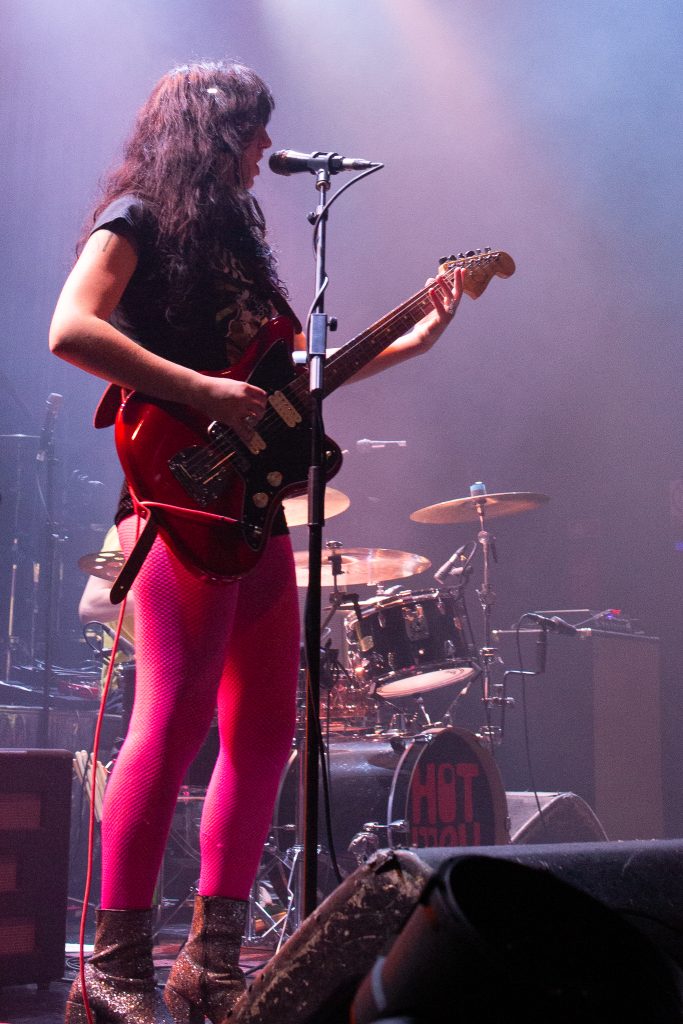 Hot Wax are up first, full of cool swaggering garage punk attitude, with an awesome line in slinky riffs and bouncing beats. Early nineties Sub Pop tone and vintage fuzzy grooves. They have a great synergy onstage and a boundless authentic looseness without ever being messy, just totally dialed in and already very cool! Jazzy blues breakdowns sometimes permeate the garage punk jams and this band do rage to laid-back so effortlessly. This band looks and sounds like they’re from Seattle but they’re actually English and like Kid Kapichi they’re from that hot bed of UK punk, Hastings. Singer Tallulah, slips into a soulful lazy Sunday lilt one minute full throat shredding grunge attack the next on the awesome single ‘Rip It Out’.