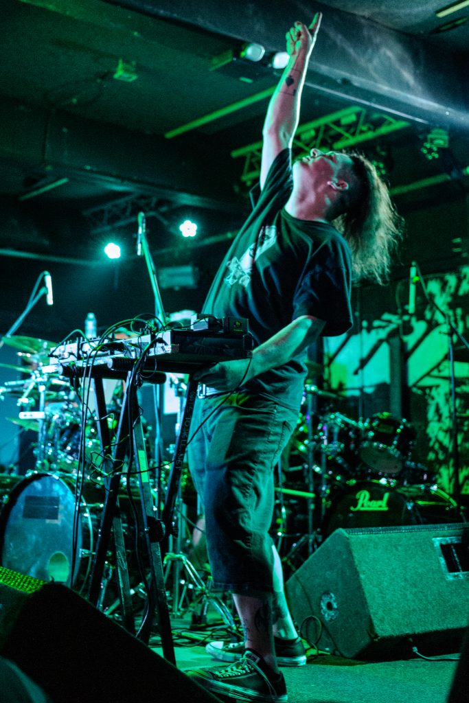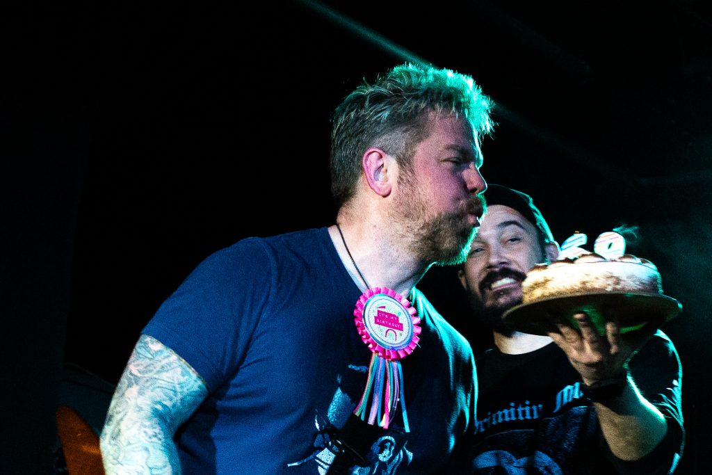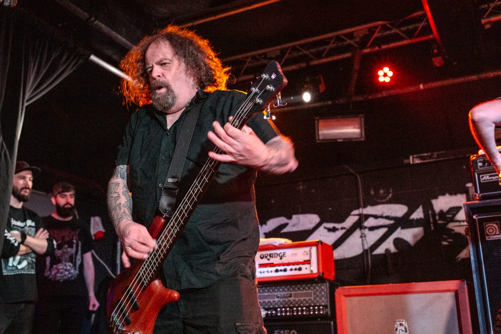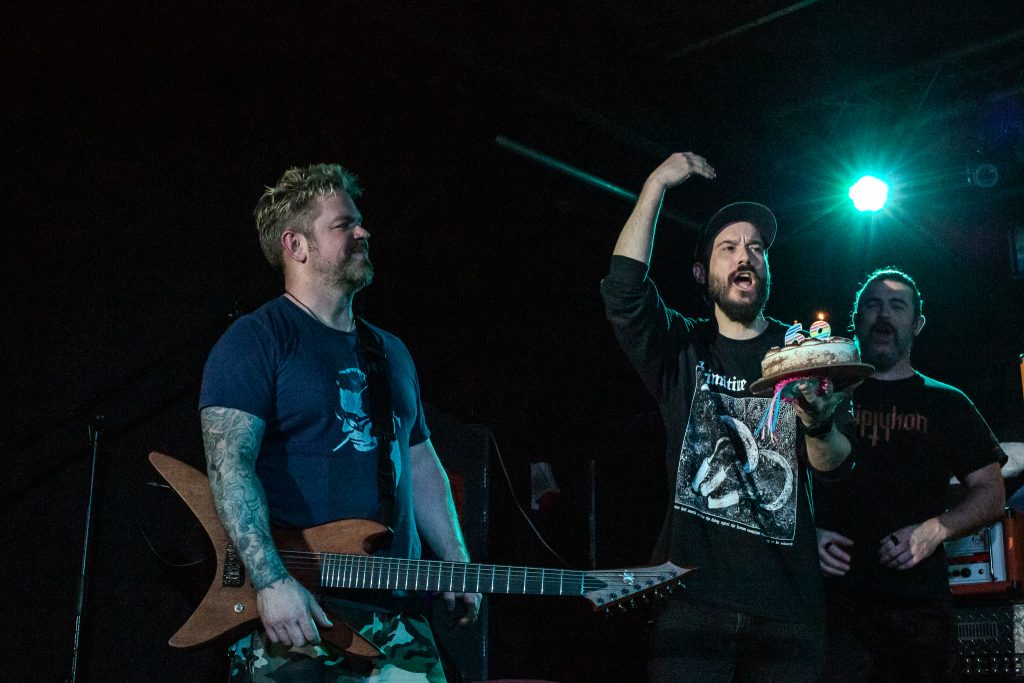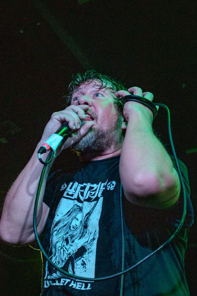 Pig Destroyer is a thing of myth and folklore; such is their legacy, and tonight, they are everything we had hoped for and more! Taking the stage to a technical difficulty, which is a very Pig Destroyer thing to do, the legendary Relapse golden years veterans waste no time in plundering their twisted, incredible discography, starting with ‘Gravedancer’ from 2004’s excellent ‘Terrifyer’ LP and carrying on with this album, for the following few tracks thus sending the audience utterly insane. The temperature in the venue increases by 100% as they tear through classics from Phantom Limb and Book Burner at lightning-fast speed. It’s blasting breakneck grinding with their keyboard player/noise technician serving as a hype man to the remarkable scene legend J.R. Hayes. The sound is utterly on point tonight. After Primitive Man has pummelled us into the ground, Pig Destroyer picks us back up and shakes the collective around. Most of us are in slack-jawed awe that we are witnessing true extreme metal royalty as they end by peeling off stone-cold killers from the peerless ‘Prowler In The Yard’. A surprise moment of joy and levity follows as they celebrate chief six-string mangler Scott Hull’s birthday onstage a day late (because he’d be wise to it on the day), complete with cake, balloons and candles! Then back to the blast beats, or you’d be forgiven for thinking you’d walked into a Party Cannon show. This is all fantastic fun and perfectly caps off this side of the show! We call them legends for a reason, Pig Destroyer utterly slay!!!