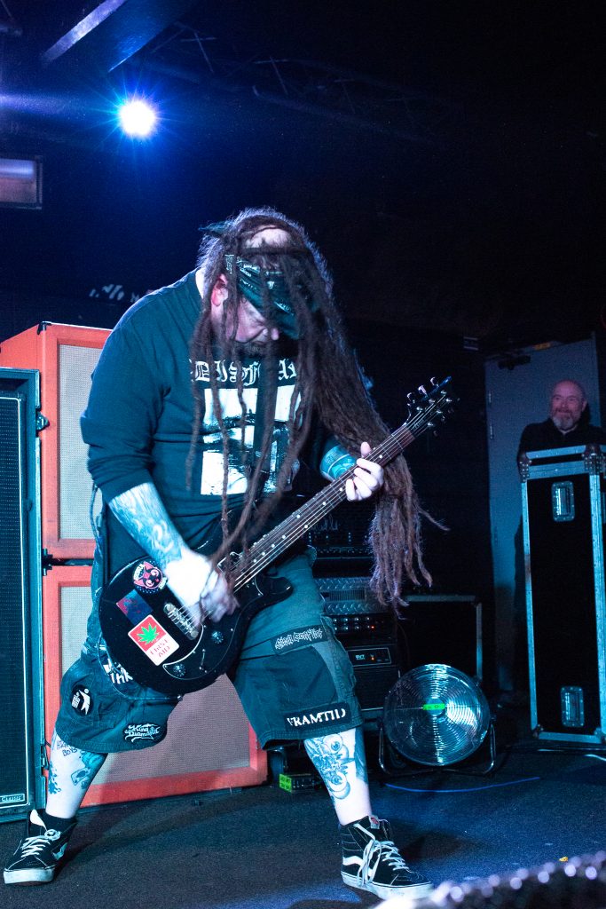 No matter how often you see Napalm Death, you’re still stunned that they’re actually there before you. We don’t fanboy a lot, but it still stuns us into double taking sometimes; we can’t believe we’re witnessing pure metal history in the flesh. Danny Herrera on Drums is an absolute machine as ever, and as I’ve said many times before, you can’t beat a band member with big, thick dreads. John Cooke also possesses even more prominent, thicker riffs! We’re fast running out of superlatives here, and if you’ve ever witnessed Napalm Death live, you know they just don’t do anything less than stunning performances. They pretty much always will play the best version of ‘Nazi Punks Fuck Off!’ (Admit it, it’s the best version!) Tonight, they’re backed up with the best in the game as support acts; this is the most robust grind tour package we’ve seen since the Grind Crusher glory days! (Ask your Mum and Dad!) Every band tonight pays onstage tribute to the band who helped start this whole damn thing way back in the eighties. A furious racket made by disgruntled youths in a ramshackle pub in Birmingham under Thatcher’s government. A band with no other intention than to let the world know just how pissed off they were. All these years later, they’re still just as angry, only now they’re the grand masters, originators and pioneers of the craft!