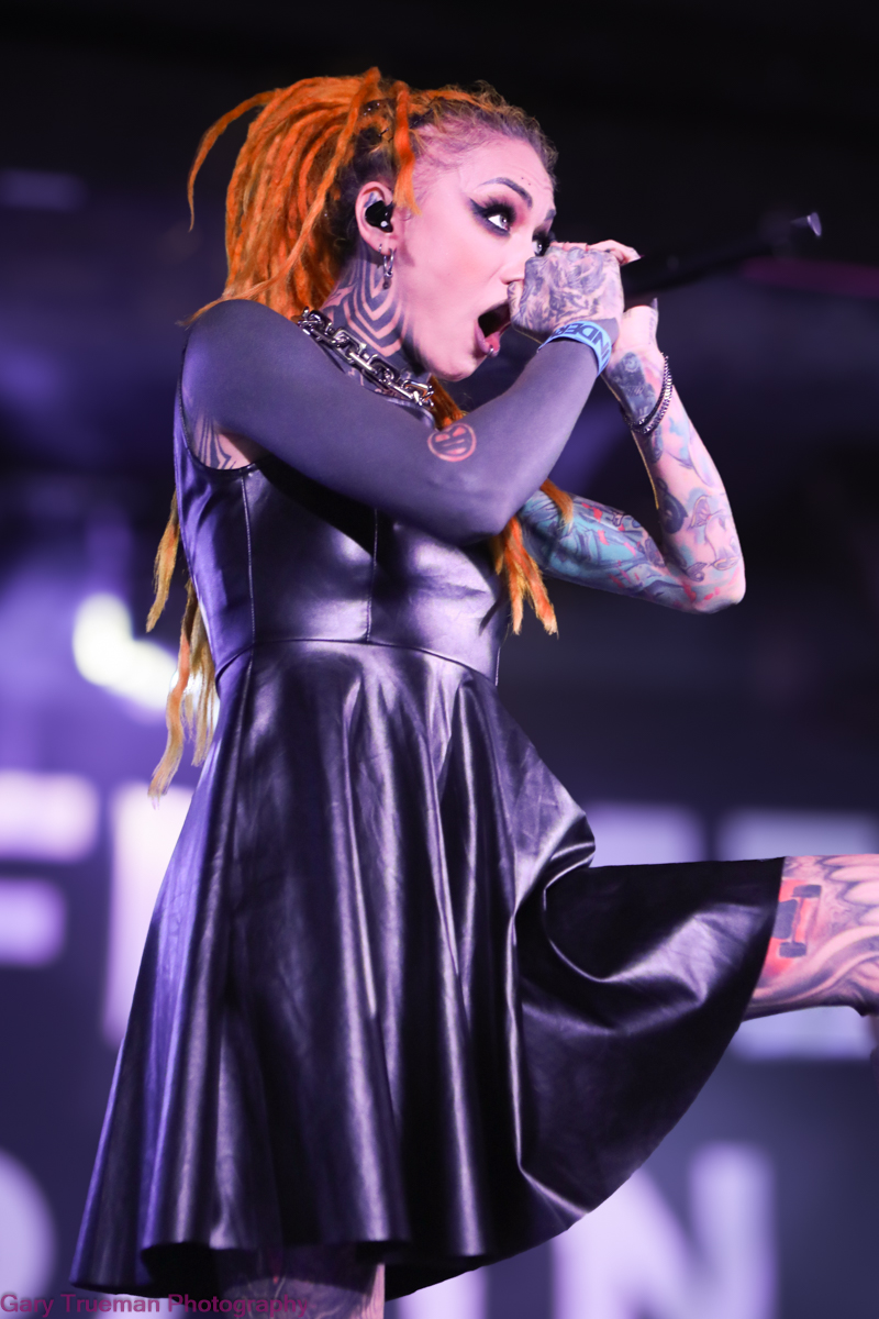 On first looks Skarlett Riot might seem an odd fit sandwiched between, on paper, much heavier acts. That’s not really the case these days though with the Scunthorpe four piece hitting harder than ever before. You still get those hard rock vibes but now the metal flows through every vein and note. This band are tight too, seriously so. A few sagely nods from musicians in the crowd mimicking Dan Oglesby’s guitar licks tells you all you need to know. While the music has morphed Skarlett has wisely resisted any temptation to go full on screamo – a wise move. It’s her power and clarity with varying degrees of fry that set the combo apart. Tonight shows just how far Skarlett Riot have progressed.