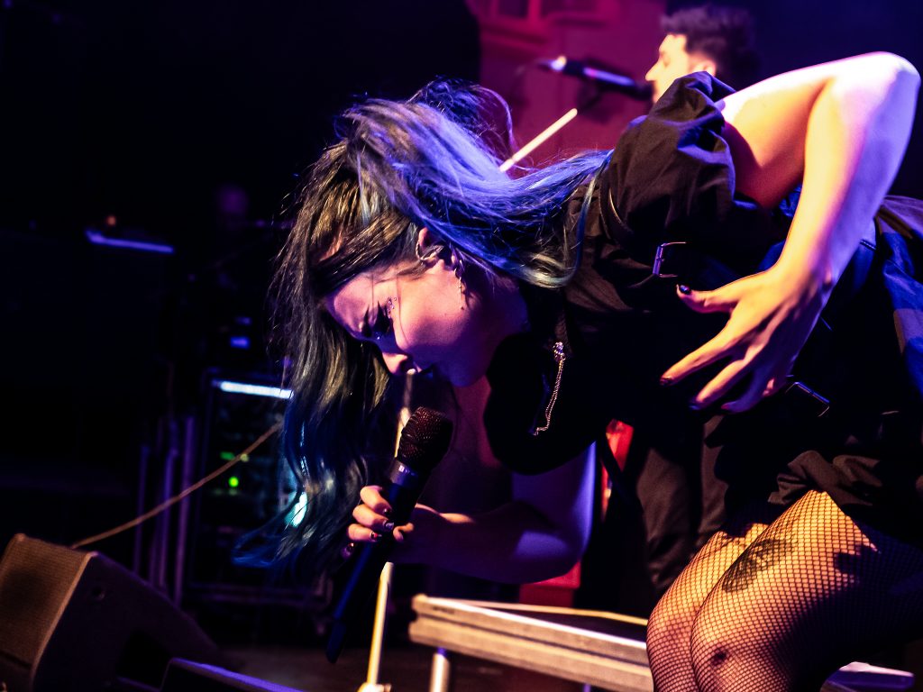As December Falls are a real burst of energy exploding with youthful exuberance and sweet melody, they can turn on the heavy when they want to. Guitar led bubblegum pop leads the charge, and this band could easily be from California instead of their native Nottingham. Every member is jam-packed with charisma, and their stagecraft is undeniable. Singer Bethany Curtis boasts an excellent note-perfect performance, and every member of this troupe is grinning like Cheshire Cats from the get-go. They have many fans in attendance and appear to have the time of their lives. Mass sing-alongs and happy vibes ensure this crowd are well and truly warmed the fuck up. They Ride in on, Join The Club and exit on a Carousel with a circle pit to match. Great fun from a band with hits for days.