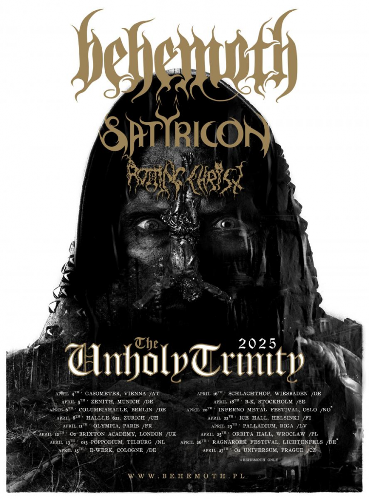 Don’t miss BEHEMOTH live on their Unholy Trinity headline tour with Satyricon and Rotting Christ.