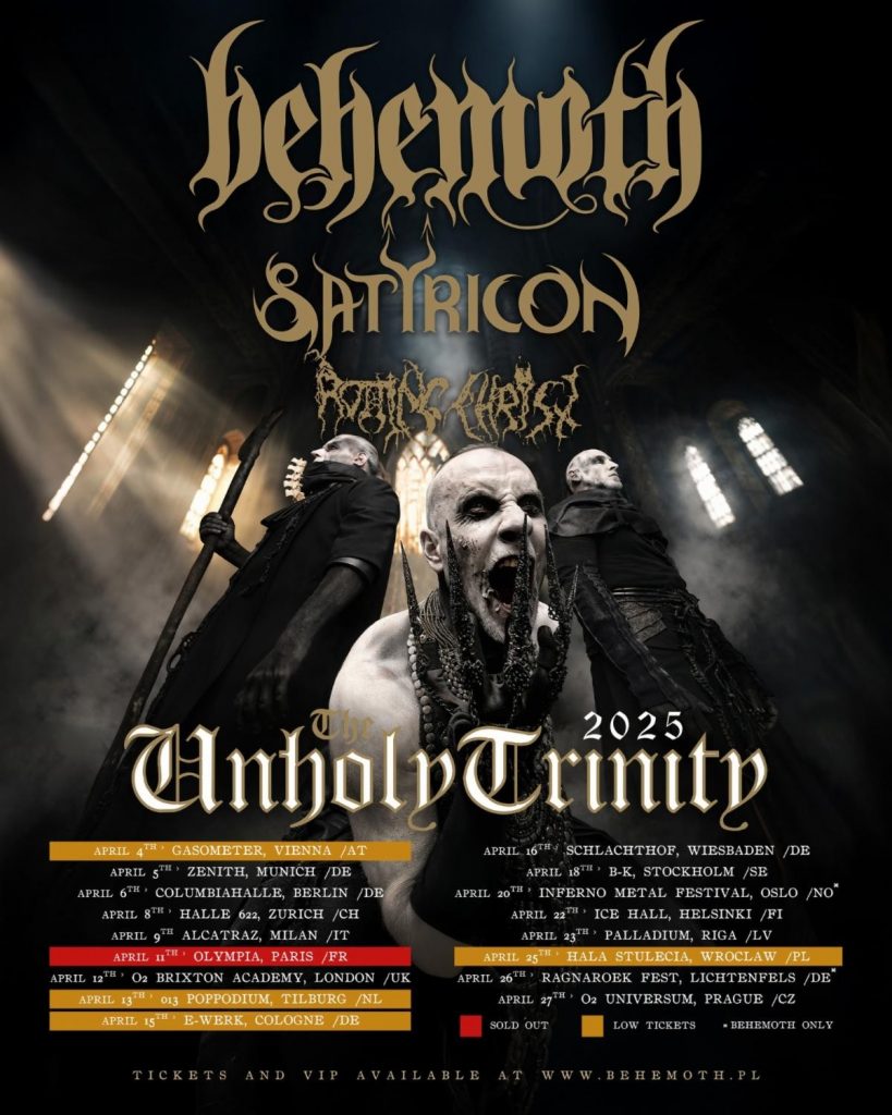 Don’t miss BEHEMOTH live on their Unholy Trinity headline tour with Satyricon and Rotting Christ.