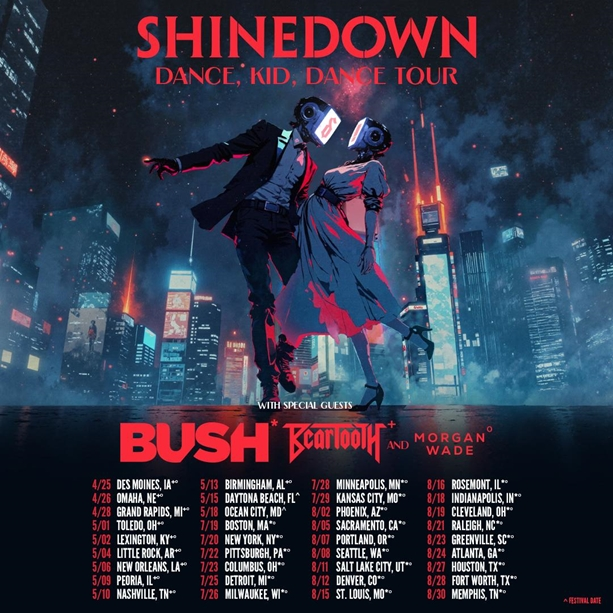 The band has already had a packed 2025 as their latest single “Dance, Kid, Dance” has made history reaching #1 on the Mediabase Active Rock Chart, which marks their 22nd song to reach #1 on the chart, and on the Billboard Mainstream Rock Chart. Shinedown have become the only band in the charts history to reach 20 #1’s on the chart. Not to mention when the song entered the Top 5 on the Billboard Mainstream Rock Chart, Shinedown tied with the Foo Fighters for the artists with the most songs to hit the top 10 in the chart’s history with 32 songs each. All these incredible accomplishments continue to solidify that Shinedown have made a name for themselves in rock. On Mediabase, Shinedown hold the record for the most #1’s, #5’s and #10’s on the Active Rock chart, with a total of 24 #1’s on the Mediabase charts.