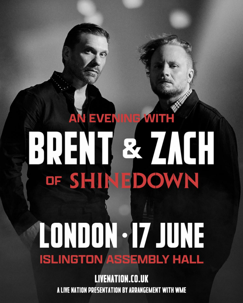 Multi-platinum rock titans SHINEDOWN have announced a very special acoustic show in London on June 17th, featuring frontman Brent Smith and guitarist Zach Myers. The one-night-only event will offer fans a rare opportunity to see the duo perform acoustic versions of SHINEDOWN’s biggest hits, deep cuts, and fan favourites in the intimate setting of Islington’s Assembly Hall.
