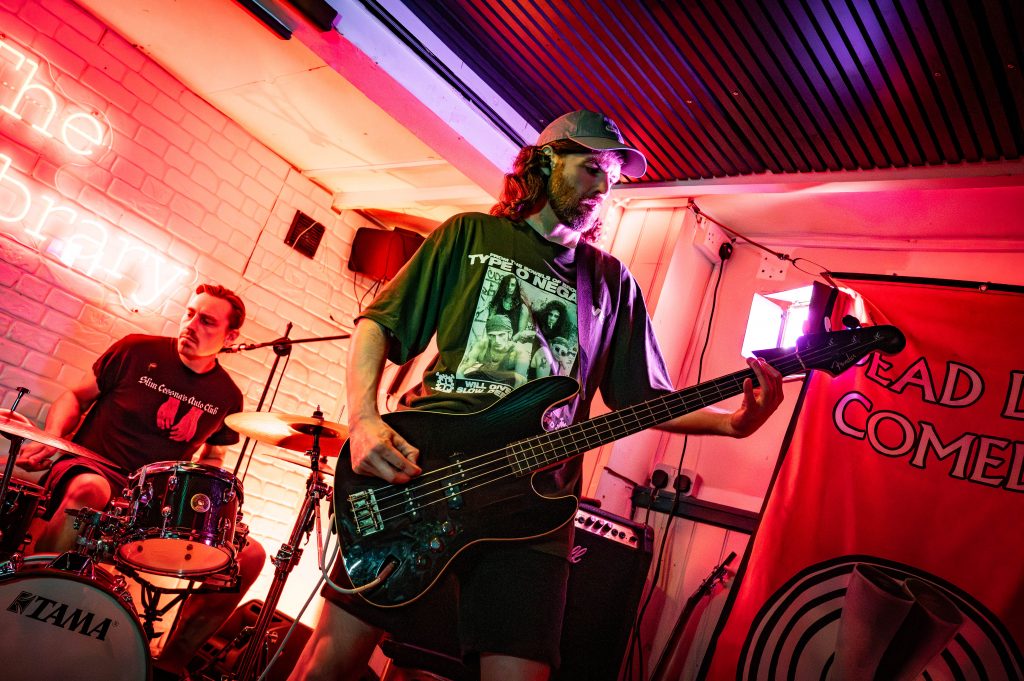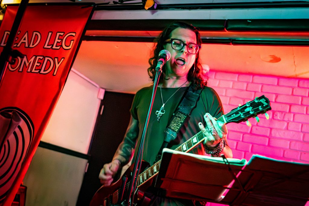 The night opens as usual with the Dead Leg House Band, who have brushed up on some punk music. Alongside their new comedy show they’ve also been writing a History of Punk so the music choice for the evening has been selected accordingly. It’s straight into “Teenage kicks” from the Undertones before going into “Alternative Ulster” by Stiff Little Fingers. Rounding off a triple bill of recognisable punk classics is “Bored Teenagers” by The Adverts. It’s then onto the comedy.