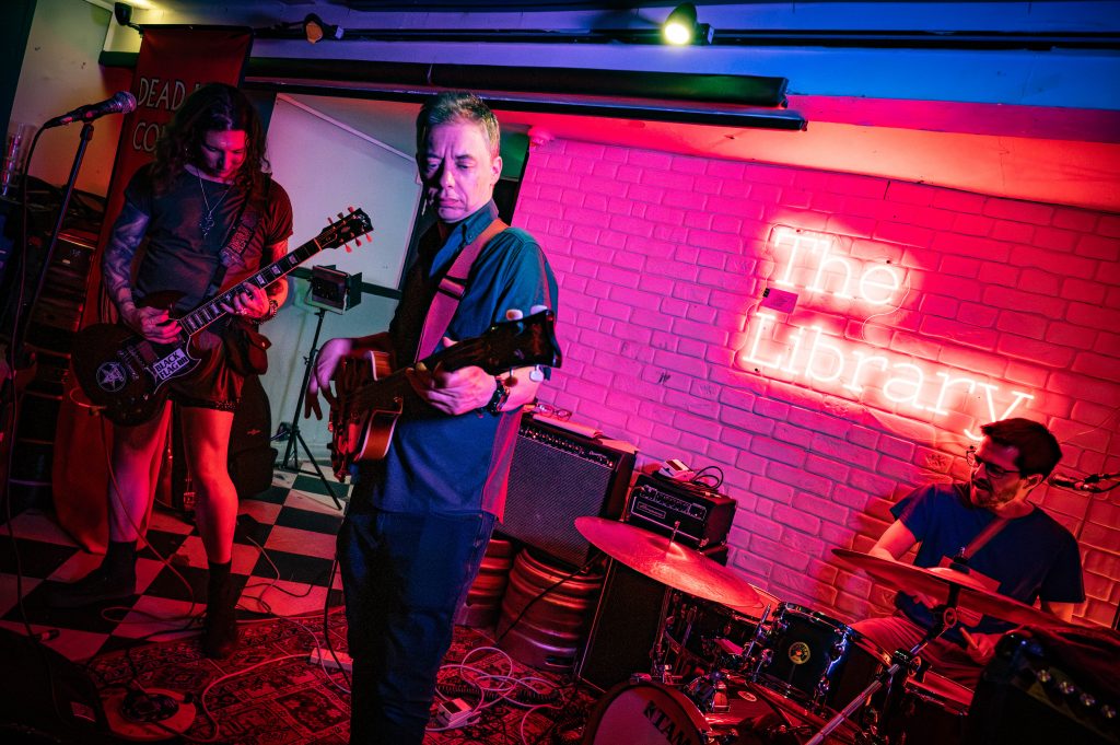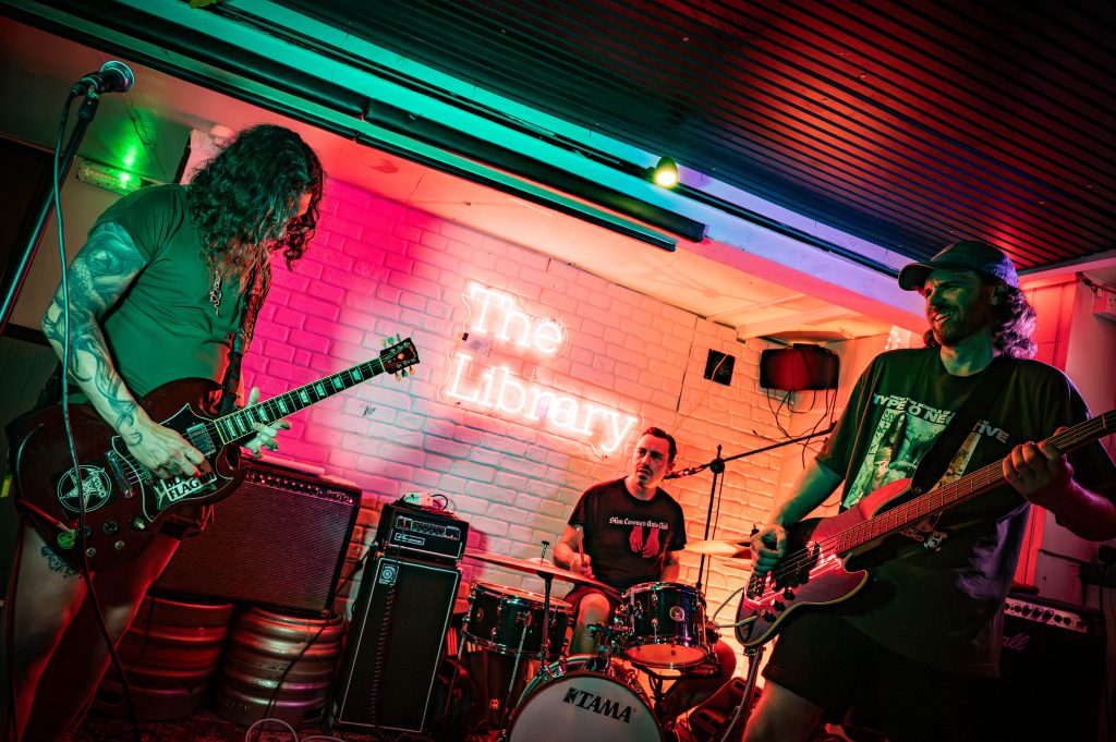 It’s a change to the line-up as Andrew’s band Meltzer takes to the stage to close with some hardcore tunes. They start with “I Don’t Want To Hear It” by Minor Threat before moving onto “Step Down” by Sick Of It All. They finish off with a medley of Metallica songs starting with “Master of Puppets” before segueing into Battery. It’s then back to the Dead Leg House Band and punk requests, starting with “New Rose” by The Damned. Next up it’s “Pretty Vacant”. None of the band can remember the music, but then again neither could the Sex Pistols so it’s an authentic cover at least. We get Eddie and the Hotrods’ “Nervous Breakdown” and “Rise above” from Black Flag. Last song of the night and we bring it down a bit with some Jimi Hendrix. For all that Andrew complains about playing different styles of music they pull off a very credible “Wind Cries Mary”. No Dead Leg Comedy in August, so it returns on September 15th.