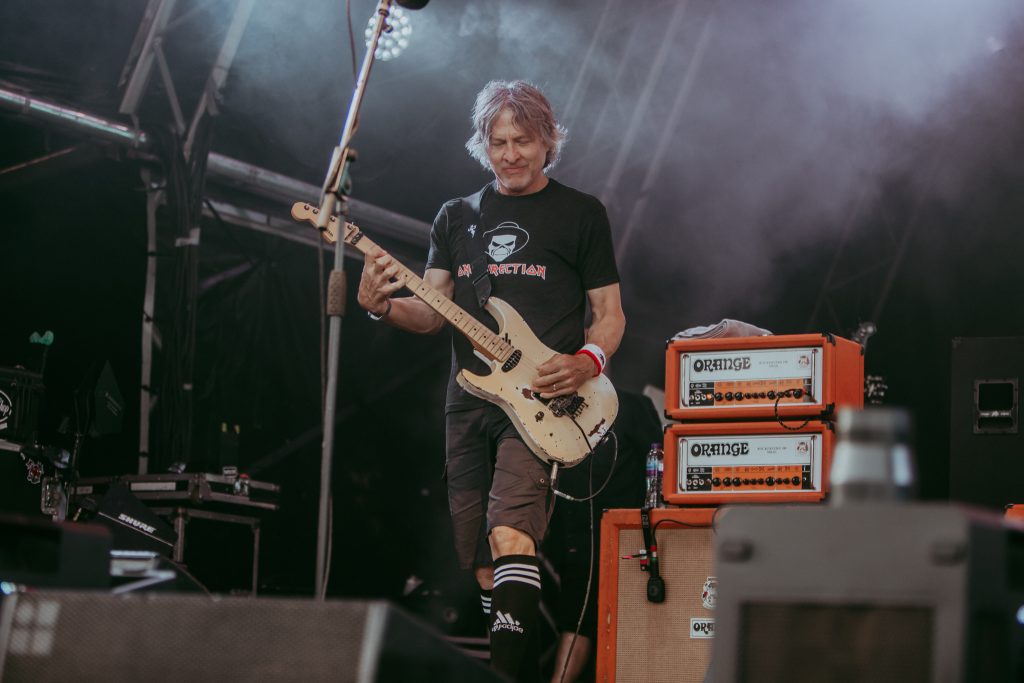 Simply writing the word’ fury’ would suffice for discussing Fury’s set, but that would be missing out on noting some finer details. The group were out of the traps with vigour, with’ Interceptor’ at’ 200mph…’ and some aesthetically pleasing dancing between the guitarists through the wicked’ Prince Of Darkness’, a little heavy metal energy to satisfy the lunchtime cravings.