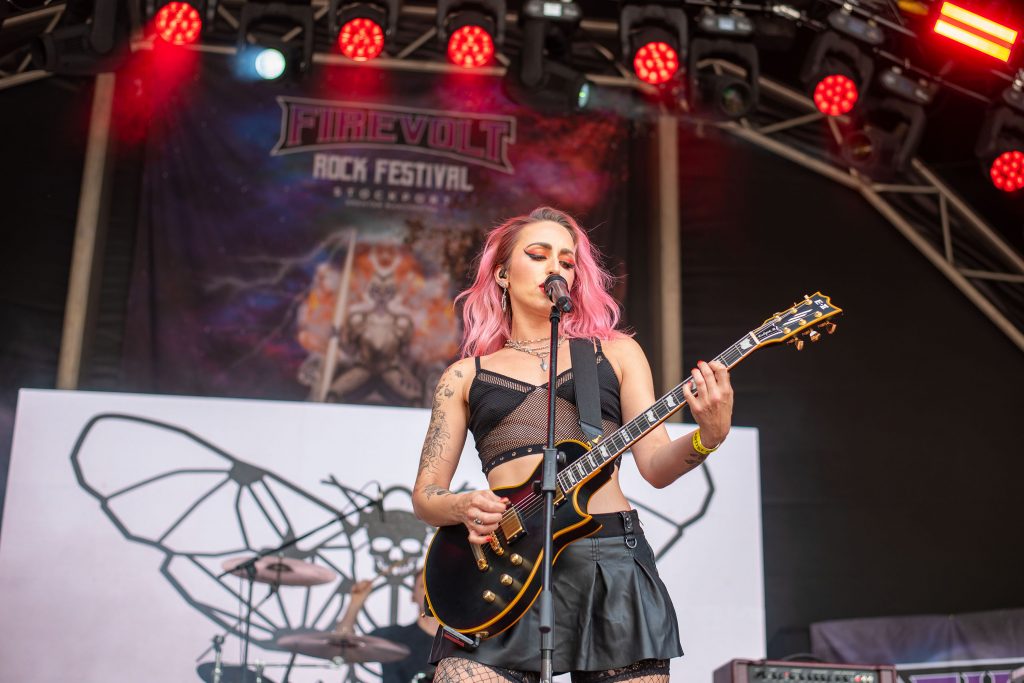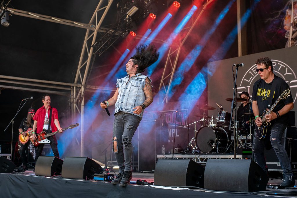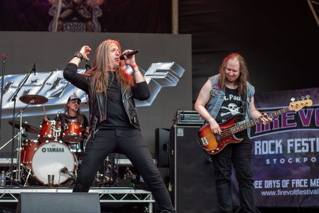 Whilst many people find themselves in church on a Sunday morning, something far more exciting is happening at Firevolt. Huddersfield’s Liberty Slaves have brought the sunshine and some sleaze factor and roll it all up in tunes such as ‘Devil In Me’. They seem a tad dangerous for this early hour, an idea given credence when their vocalist invades the crowd to sing ‘Every Man For Themselves’. A spirited set and one that’s the perfect advert for their “rough as fuck rock ‘n’ roll”.