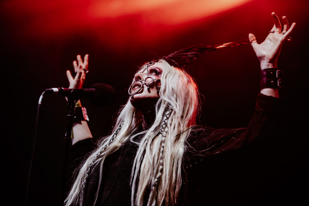 So, it’s always been important to me, and as a designer, I’ve always seen it as an extension of the music for me. Some advice that we got at first was, “Don’t wear anything too crazy”. Now I want to wear ridiculous things because, to me, it’s an extension and is something that makes me feel good and more confident on stage. The face jewellery is made by KatzLittleFactory. I’m very shy and awkward, so the face jewellery is a way for me to kind of hide a little bit on stage as well. So, it all came together quite naturally. I think when we first started touring, I was just wearing, you know, whatever. And it’s like, “No, this isn’t me”. So, it just built and built.
