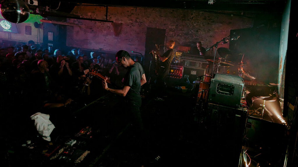 We arrive at Institute just in time for an act whose name is slightly misleading, Jackie O Motherfucker aren’t another power violence act, and they have nothing to do with hip hop. They are, in fact, a quite delightful, jazzy, psychedelic experience consisting of three guitarists who weave a sonic web around each other with electronic elements underpinning the performance. They are highly skilled and actually very pleasant.
