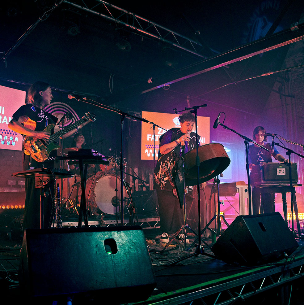 Back at the mainstage, Moin put in our favourite set of an extraordinary opening evening. Incredible drumming and dreamy, experimental electronica and shoegaze merge in a glorious, kaleidoscopic fashion. This is a hugely emotive set by the three-piece, and well-thought-out visuals and pitch-perfect peaks and valleys beautifully complement it. The stunned crowd are all unified in awe as this unforgettable set seeps into every pore of the Institute. It’s a stunning mainstage climax on day one and a performance that sets the bar ridiculously high for the rest of the festival.